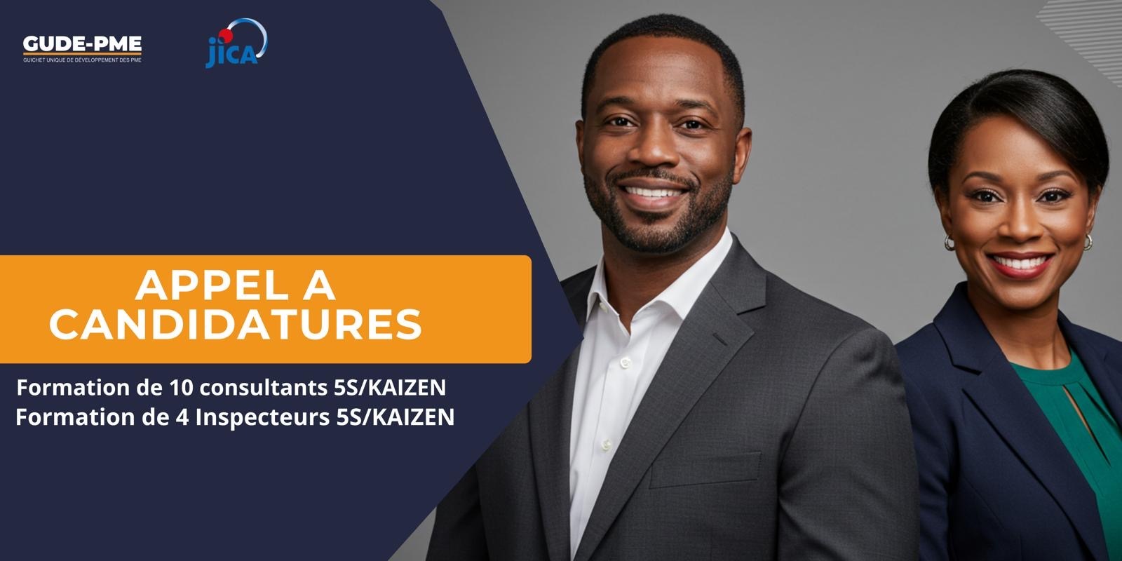Le Ministère du Commerce de l’Industrie et de la Promotion des Petites et Moyennes Entreprises, (MCIPPME) et le Guichet Unique de Développement des Entreprises de Côte d’Ivoire (GUDE-PME) en collaboration avec la JICA (Agence Japonaise de Coopération Internationale), lancent un appel à candidature pour le recrutement en vue de former 10 Consultants spécialisés dans le 5S/KAIZEN. Le KAIZEN est une méthode de gestion d’origine Japonaise. Pour plus d’informations sur le 5S/KAIZEN, voir les liens :